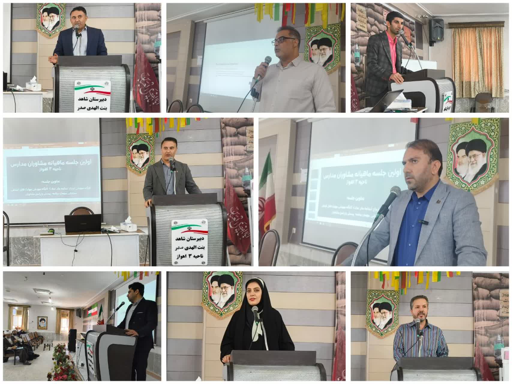 به گزارش خوزستان فردا، روز یکشنبه 11 آبان 1404 اولین جلسه ماهانه مشاوران مدارس ناحیه 3 اهواز با حضور روح الله دانشی مدیر آموزش و پرورش ناحیه ۳ اهواز و علی امیری مقدم، رییس اداره امور تربیتی، مشاوره و مراقبت در برابر آسیبهای اجتماعی استان در سالن اجتماعات دبیرستان شاهد بنت الهدی صدر برگزار شد.